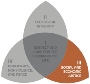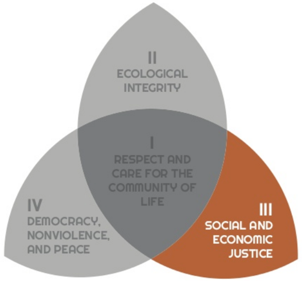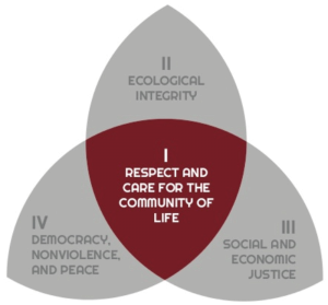 7. Adopt patterns of production, consumption, and reproduction that safeguard Earth’s regenerative capacities, human and non-human animal rights, and community well-being